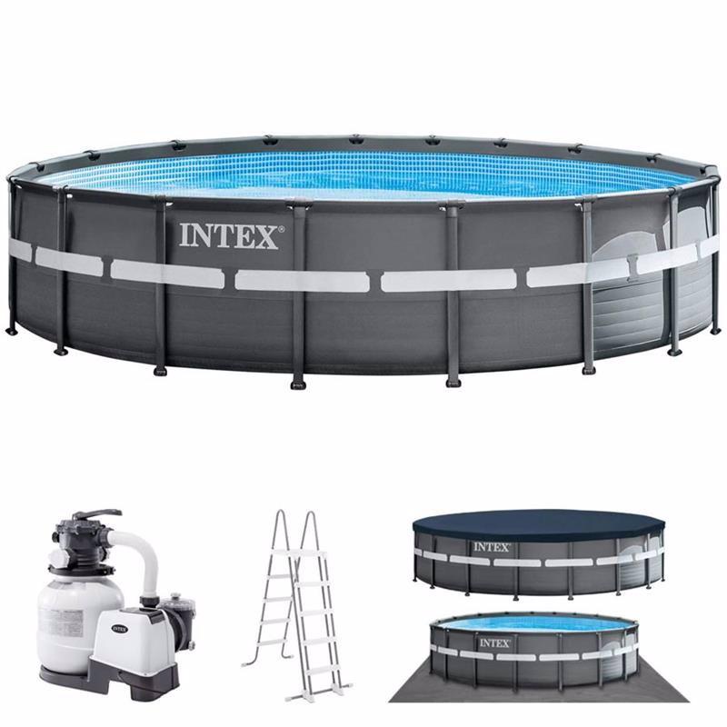 Каркасний басейн Intex 26330 (549x132 см) (Пісочний фільтр-насос 6 000 л/год, драбина, тент, підстилка)