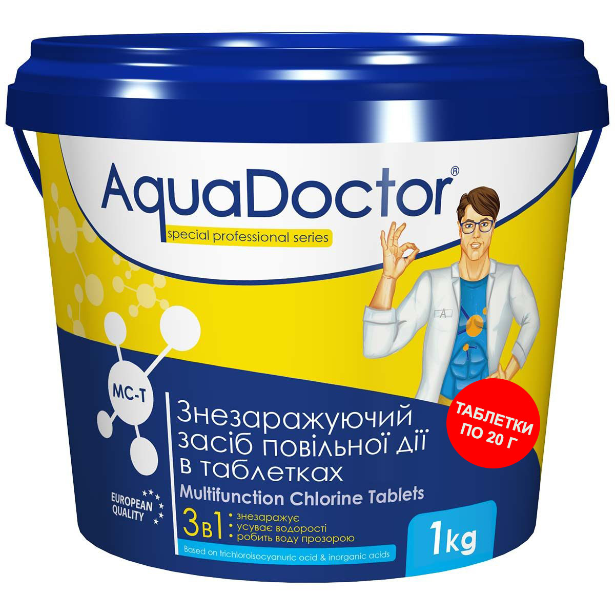 Хлор для басейну 3 в 1 AquaDoctor MC-T (1 кг) (Таблетка 20 грам)